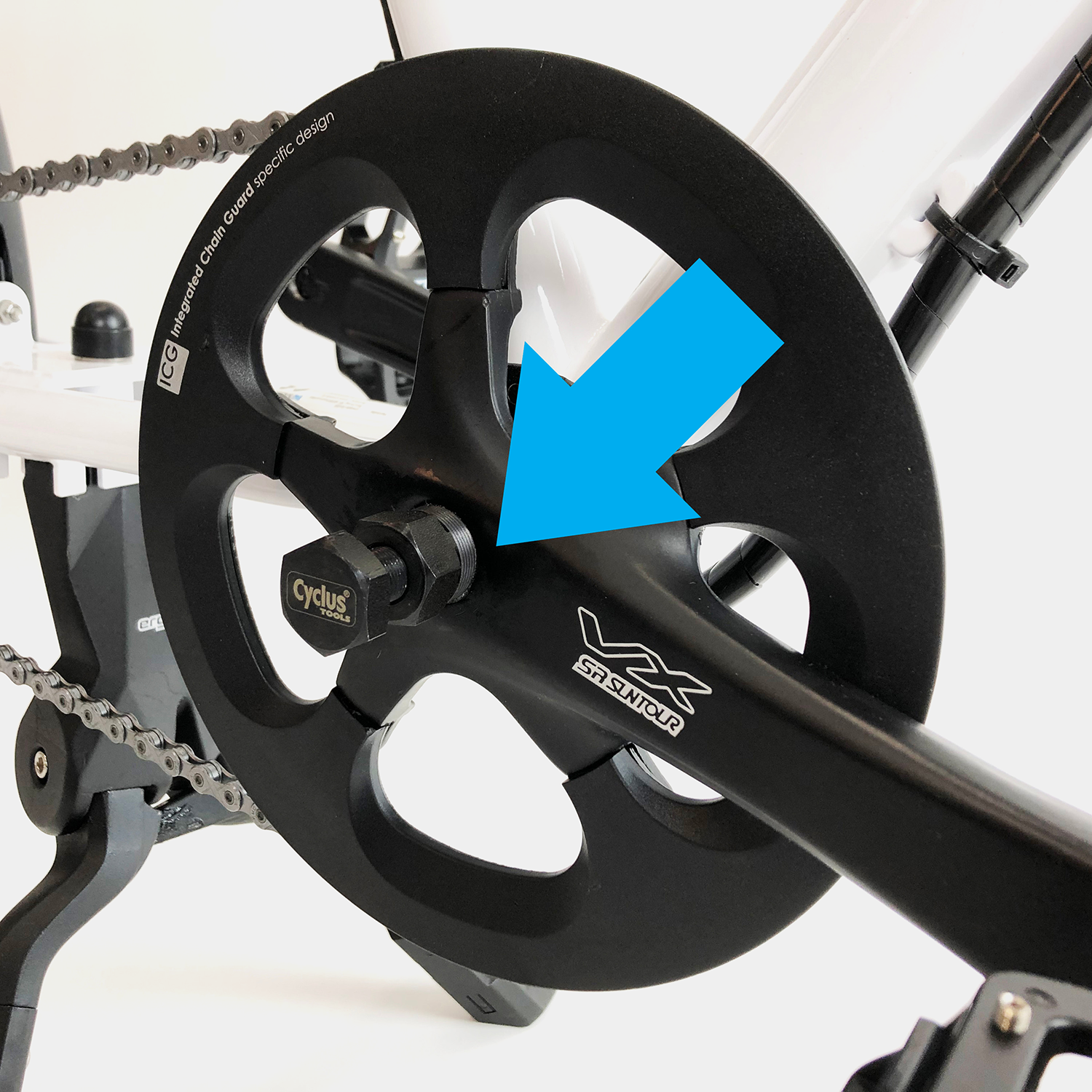 Der Kurbelabzieher wird benötigt, wenn ihr die Tretlagerschrauber lösen müsst. Zusätzlich braucht ihr noch einen passenden Maulschlüssel.